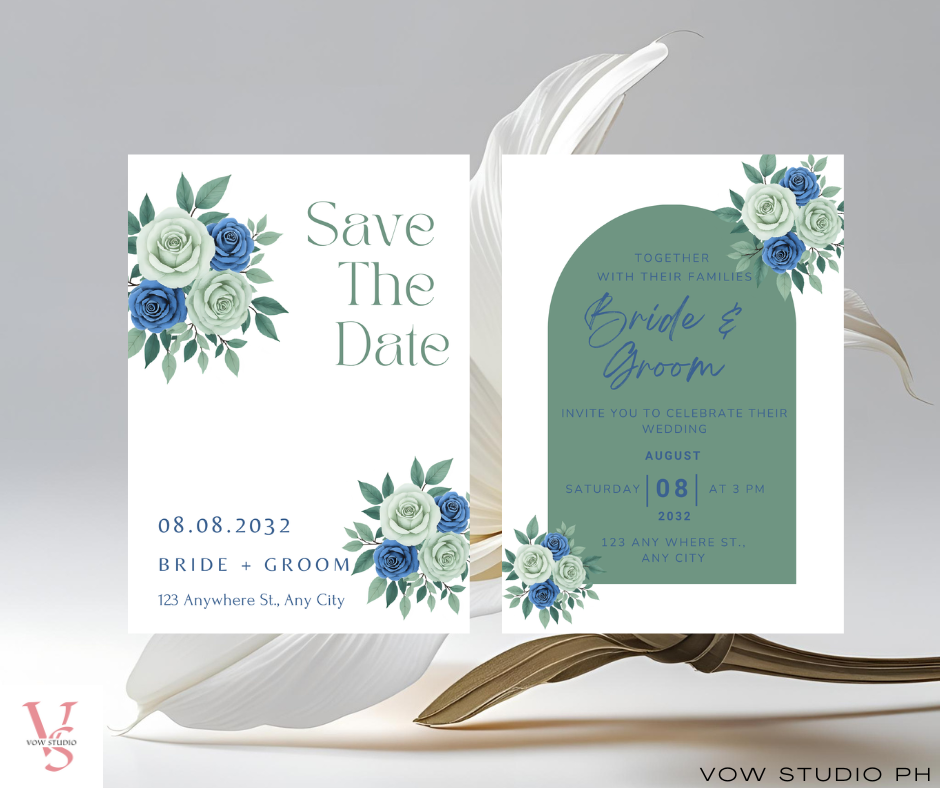 Blue and Green Wedding Invitation Template | Fresh Elegant Editable Design for Modern Nature Wedding