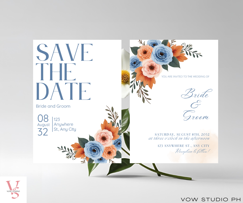 Celebrate your big day with our Blue and Pale Orange Wedding Invitation Template, blending soft blue and pale orange tones for a light, airy feel—perfect for summer weddings. This Canva template is fully editable, giving you the freedom to personalize every detail.